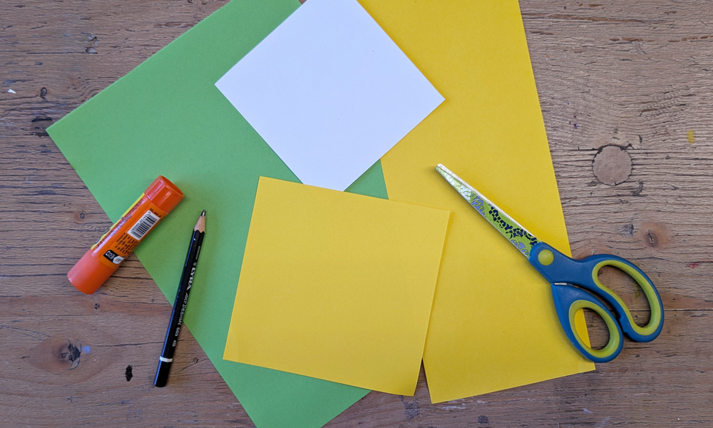 - gelbes Papier, 2-3 (ca. 10 cm Seitenlänge)