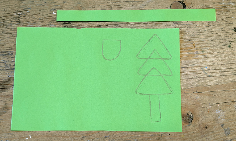 - grünes Papier, 2-3 (längere Rechtecke, ca. 15 cm)