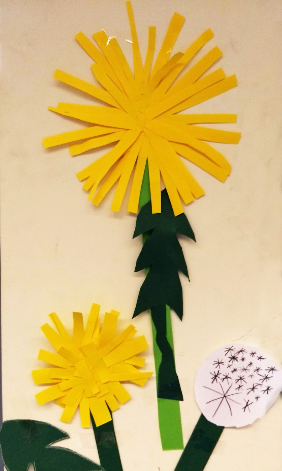 Oder wie unten eine Löwenzahnreihe im Flur machen. Oder einfach einzeln an die Wand bappen.